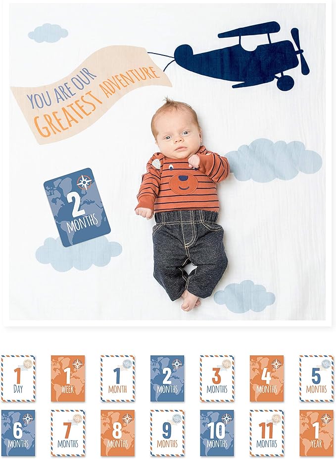 הפכו את אבני הדרך של התינוק לזיכרונות בלתי נשכחים עם מארז שמיכת הטטרה וכרטיסי אבן הדרך מבית lulujo.