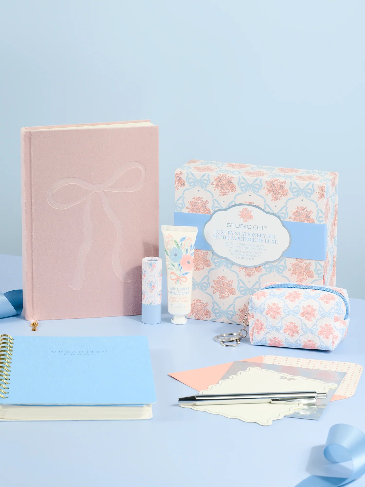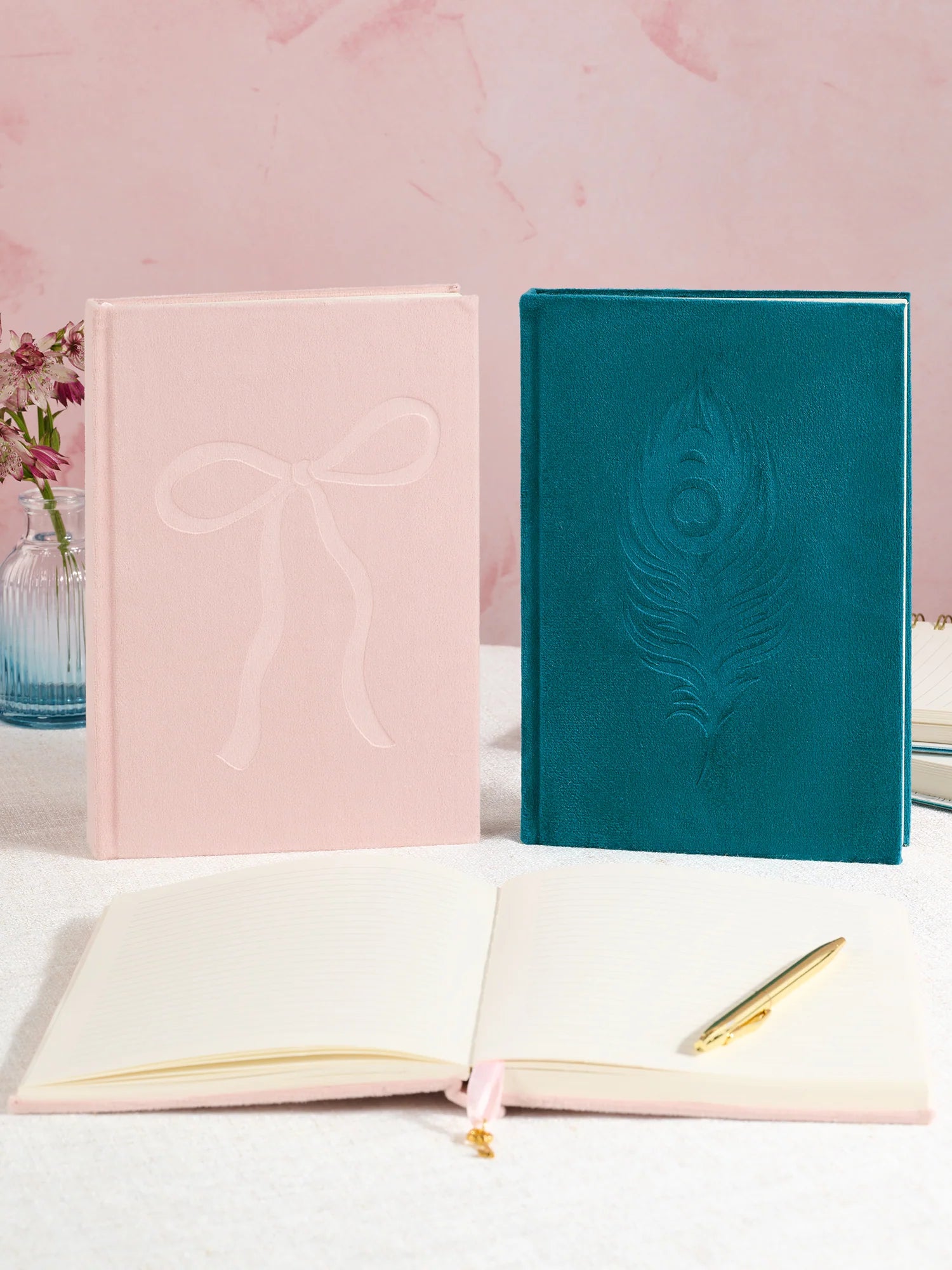מחברת כריכה קשה קטיפתית Sweetheart Pink Bow