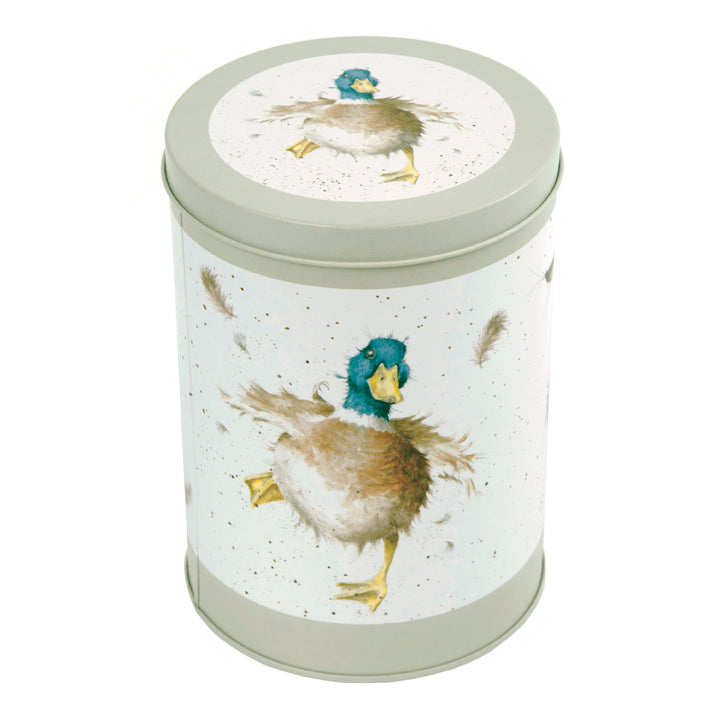 קופסת המתכת העגולה מכוסה כולה באיורי חיות חמודות